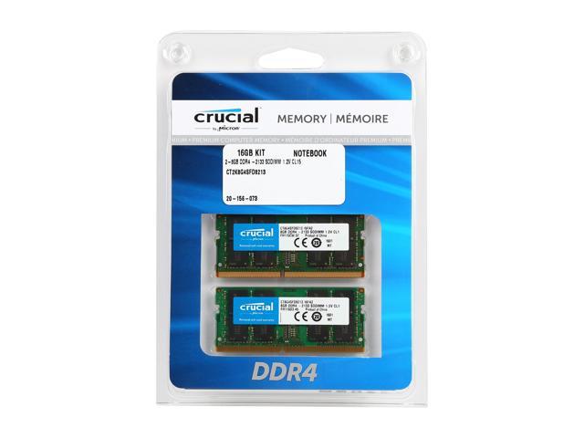 | Features | CT2K8G4DFS8213 is a 16GB Kit consisting of (2) 8GB DDR4 Notebook modules that operates at speeds up to 2133 MT/s and has a CL15 latency. It is an Unbuffered DIMM. It conforms to the industry standard DDR4 ECC UDIMM layout of 288 pins and is compatible with systems that take DDR4 2133MT/s UDIMM memory. |