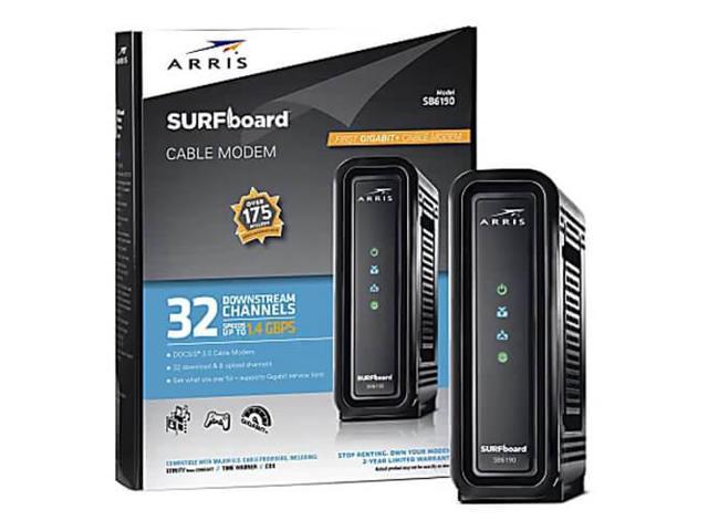 ARRIS SURFboard SB6190 BLK DOCSIS 3.0 Cable Modem - Retail Packaging - Black