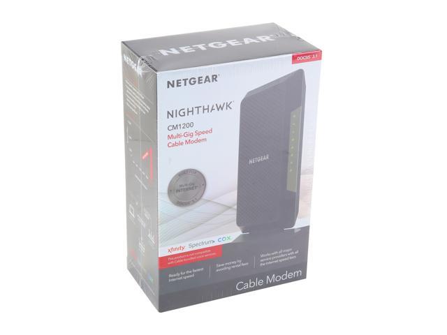 | Package Contents | Nighthawk Multi-Gig Speed Cable Modem-DOCSIS 3.1 (CM1200) Ethernet cable Quick install guide Power adapter |