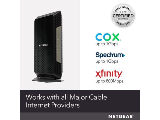“Compatible with all major cable internet providers with internet speed up to 2Gbps. Currently certified with Spectrum and Cox (up to 1Gbps) and Xfinity (up to 800Mbps). Future speeds with these service providers may change over time. Not compatible with Verizon, AT&T, CenturyLink, DSL providers, DirecTV, DISH and any bundled voice serviceWorks with any WiFi router: Connect any WiFi router to this modem’s Ethernet port to support all your wireless devices”