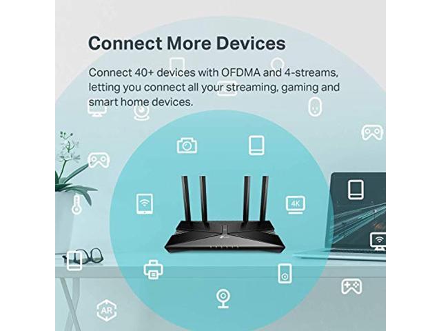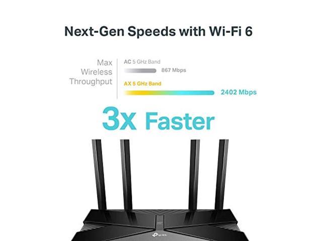 JD Power Award- Highest in customer satisfaction for wireless routers 2017 and 2019 Wi-Fi 6 Router: Wi-Fi 6 (802. 11ax) technology achieves up to 3x faster speeds, 4x capacity and 75% lower latency compared to the previous generation of Wi-Fi 5 while the power of Intel’s dual-core C Next-gen 3 Gaps speeds: 4-Stream Dual Band router reaches incredible speeds up to 3 Gaps (2402 Mbps on 5 GHz band and 574 Mbps on 2. 4 GHz band) for faster streaming and gaming like you have never ex Connect more devices than ever before: simultaneously communicate more data to more devices using revolutionary OFDMA technology Minimize lag For all devices and applications: experience ultra-smooth entertainment whether you are streaming 4K videos, gaming online, or even video chatting with up to 75% reduced lag. Increased battery life for devices: target wake time technology reduces your devices Power consumption to extend their battery life. Advanced security: Protect your network and connec