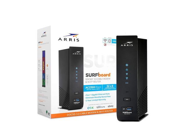 ARRIS SURFboard SBG7600AC2 DOCSIS 3.0 Cable Modem & AC2350 Dual-Band Wi-Fi Router, Approved for Cox, Spectrum, Xfinity & others (black)Power your network with speed and performance with a space-saving all-in-one device! The SBG7600AC2 combines a DOCSIS 3.0 cable modem and an 802.11ac Wi-Fi router with 4 Gigabit Ethernet ports, in one, powerful device. With 32 downstream and 8 upstream channels it is perfect for gaming, streaming and sharing. No more managing multiple devices. The all-in-one SBG7600AC2 fits nicely into any home office and saves you money on monthly modem rental fees.ARRIS Surfboard S33 DOCSIS 3.1 Multi-Gigabit Cable Modem with 2.5 Gbps Ethernet Port, Approved for Cox, Xfinity, Spectrum & Others.The ARRIS SURFboard S33 is a DOCSIS 3.1 Cable Modem that delivers the fastest speeds and the latest technology. With a 2.5 Gigabit and a 1 Gigabit Ethernet port, the S33 enables a multi-gig experience for things like online gaming, 4K video streaming and more. Its best for cable internet speed plans up to 2.5 Gbps and setup is simple with an easy-to-use app. It’s compatible with any Wi-Fi router and saves you money on monthly rental fees. Upgrade your home network with an ARRIS SURFboard S33 DOCSIS 3.1 Cable