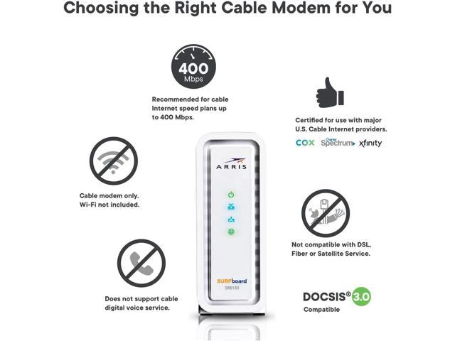 ARRIS SURFboard SB6183-RB DOCSIS 3.0 16x4 Cable Modem| Approved on Xfinity, Cox, Spectrum and most Docsis Cable Internet Providers| Plans up to 400 Mbps