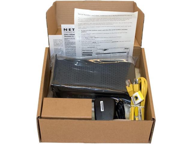 Netgear Certified Refurbished product is manufacturer refurbished to work and look as new with 90 Day Warranty and email support. All accessories are included with limited documentation and additional information online. Netgear recommends to udpate the firmware for the device to be up to date.DOCSIS 3.0 cable modem unleashes 8x faster download speeds up to 340 Mbps faster, smoother WiFi, and works with all major cable Internet providers (Not Compatible with Cable Bundled Voice Services).Certified to work with Cable Internet Providers like XFINITY from Comcast, Time Warner Cable, Cox, Cablevision, Bright House Networks, & More (Not Compatible with Cable Bundled Voice Services).8×4 channel bonding with Gigabit Ethernet Ports for fast wired, connections USB port to wirelessly share your hard drive.Double firewall protection (SPI and NAT firewall)
