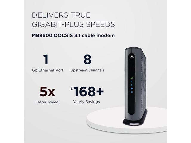 Motorola MB8600 DOCSIS 3.1 Cable Modem - Approved for Comcast Xfinity, Cox, and Charter Spectrum, Supports Cable Plans up to 1000 Mbps | 1 Gbps Ethernet Port