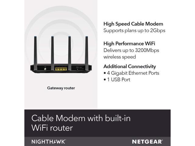 Nighthawk Cable Modem Wifi Router Combo (c7800) - Compatible with Cable Providers Including Comcast Xfinity, Cox, Spectrum | Cable Plans Up to 2 Gigabits | Ac3200 Wifi Speed | Docsis 3.1