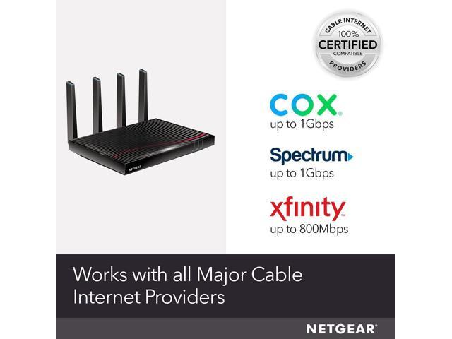 • Compatible with all major cable internet providers with internet speed up to 1Gbp. Currently certified with Spectrum and Cox (up to 1Gbps) and Xfinity (up to 800Mbps). Future speeds with these service providers may change over time. Not compatible with Verizon, AT&T, CenturyLink, DSL providers, DirecTV, DISH and any bundled voice service