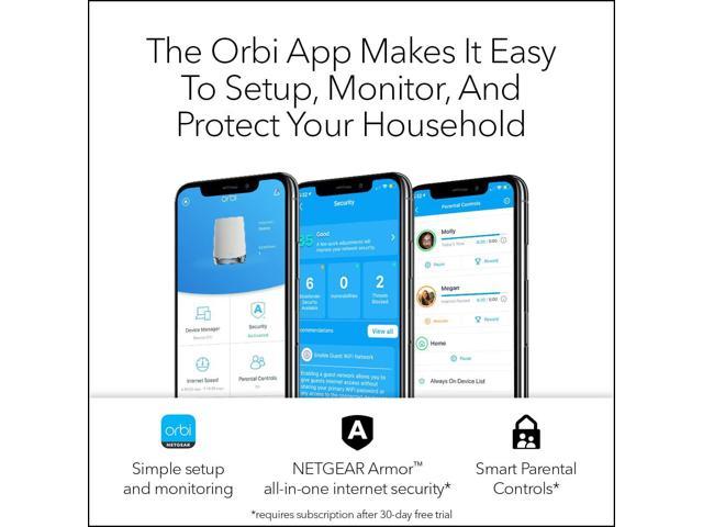 • Sets up in minutes with the Orbi App; easily manage WiFi settings, test internet speed, and monitor data usage