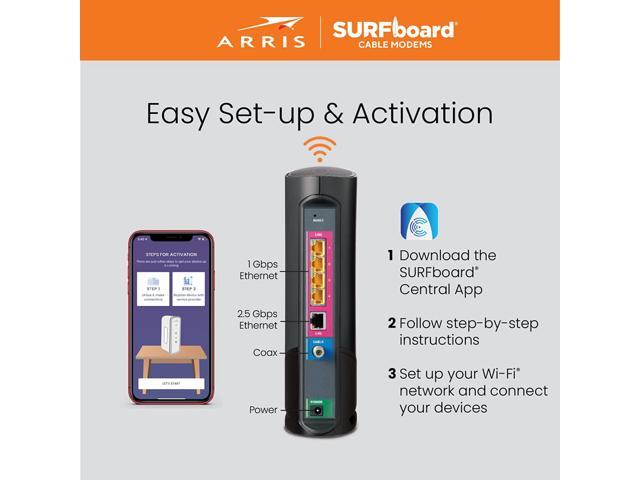 Simple and Secure Set-up: Just plug-in, download the SURFboard Central App, and follow the step-by-step intrstuctions to activate the modem, set-up and customize your Wi-Fi network, and add devices to your home network Once setup is complete, the app provides real-time monitoring of the devices on your network, enhanced parental controls like setting time limits and pausing internet and much more.