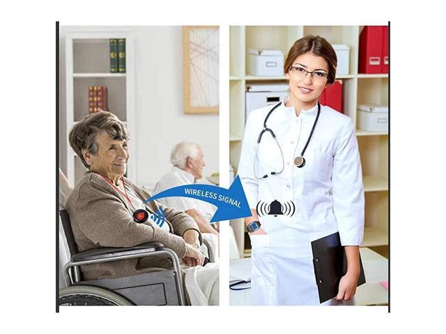 ********************1 Wrist Pagers and 2 Call Buttons, the Idea is for Both Caregiver and Patient/Elderly/Resident/Handicapped/Sick Freedom while Still calling for Help at home. Not need to Yell to Get Someones Attention.**********SMART CAREGIVER ALERT: Vibration or Audible Prompt for choice. Wake Up the Night Shift Caregiver Only, And not wakeup/disturb the others.**********Transmitter/Push Call Button is Waterproof. Acceptable for Meal/Soup Splash. And Allow to be Installed in the Washing Room.**********Transmitter/Push Call Button is Easy Carry. It can Be Put in Pocket. Or Hang on neck as Pendant. Neck Strap included. Fixed in Bedside/Washing Room. The Fixed Bracket and Double sticker are included**********Both Pager/receiver and Call button are powered by Built-in battery. Pager battery are Rechargeable. Standby time about 3 days. DC 12V 23A Call button battery. Standby time about 1 years