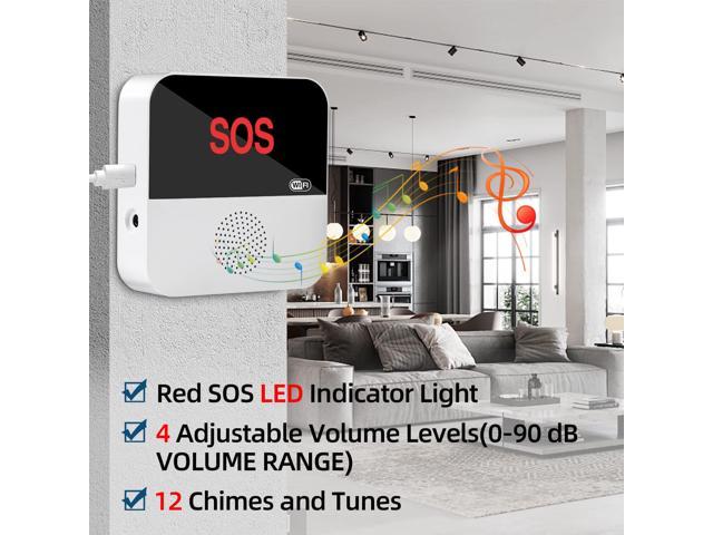 Audible/Visible Alarms Call BellQuickly press the caregiver call button sends a signal to a receiver, the pager will sound an alarm, and the built-in LED indicator light in the SOS area will flash red to remind caregiver, drawing the caregiver attention via a visual or audible chime alert. The caregiver pager has a choice of 12 ringtones and 4 adjustable volume levels from 0db to 90db. Silent mode with LED flash is available