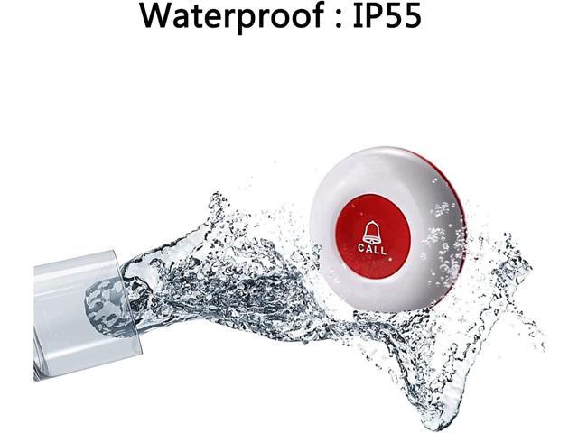 ANYONE CAN OPERATE IT: Even with limited function in the hands, a person will be able to press the watch pager or the call bell button to ask for help. The included neck strap will ensure the elderly pager is always easily accessible. The call button unit is splash proof and can be affixed on the bathroom wall. The watch pager and alert button unit cannot be immersed in water so should be removed before bathing or showering