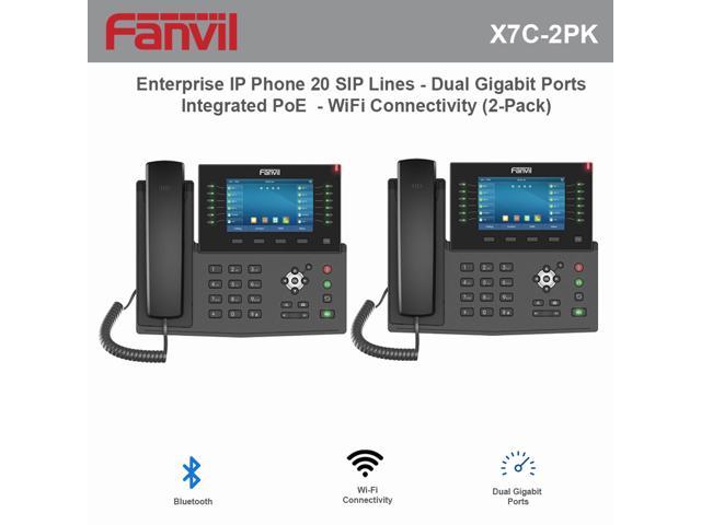 Fanvil X7C High-End Enterprise IP Phone 20 SIP Lines with Dual Gigabit Ports and Integrated PoE and WiFi Connectivity (2-Pack)In addition to a 5-inch high-resolution color screen, the telephone also features 20 SIP lines, HD audio with Opus support, up to 60 DSS keys (12 physical), Built-in Bluetooth, Wi-Fi connectivity and more!Newly-added support for Opus and a larger audio cavity bring abundant, strong low-frequency audio effects. The speakerphone adopts full net coverage delivering crystal clear, life-like voice communication.
