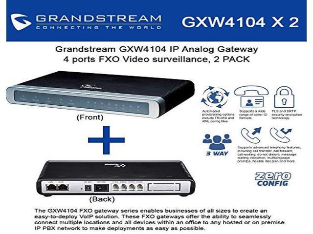 Bundle of 2 Grandstream GXW4104 IP Analog Gateway, GXW FXO IP Analog offers the small enterprise, SOHO, remote offices and multi-location enterprises a cost-effective, easy to deploy VoIP FXO solution, connect multiple locations to an IP PBX system.