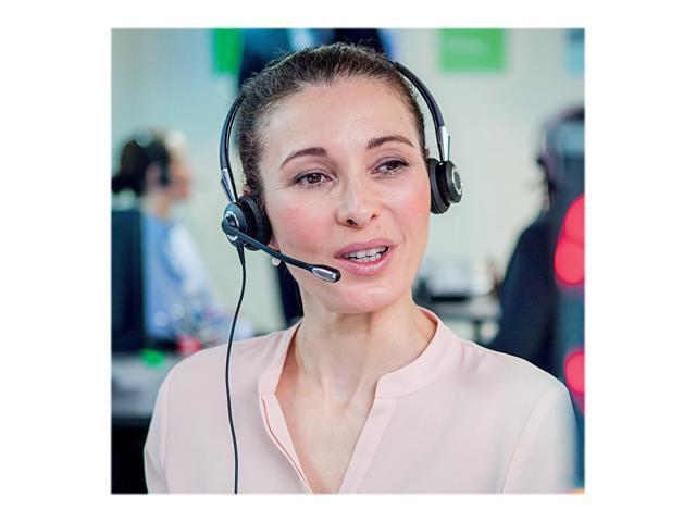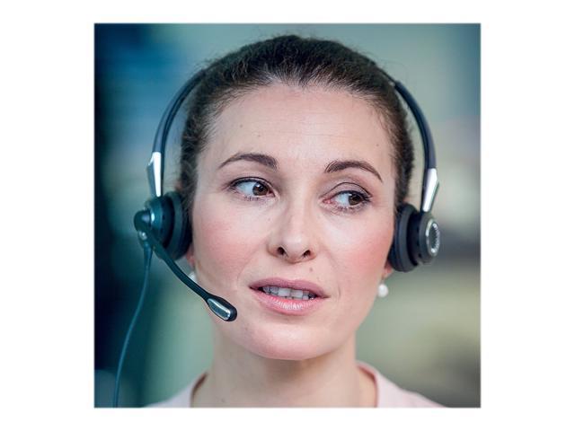 The Jabra Biz 2400 was developed with one goal in mind: to be the world’s best corded contact center headset, delivering both best in class noise cancellation and acoustic shock protection, as well as the industry’s only unbreakable 360 swiveling boom and Kevlar-reinforced cord. Available in a variety of wearing styles. The world’s best contact center headset Jabra’s Biz 2400 was designed with one goal in mind: to be the world’s best corded contact center headset. Ultra Noise Canceling microphones ensure in-the-room call clarity. Hand-made Neodymium speakers deliver the maximum frequency response – from narrow band to IP wideband telephony and multimedia. Kevlar reinforced cords, gold plated contacts, and an unbreakable FreeSpin™ boom ensure it stands up to the most demanding environments. Make sure your customer only hears one agent at a time How your agents sound to your customers impacts how your brand is perceived – so giving your agents the tools to make them and your brand look good is smart business. Jabra’s Biz 2400 is designed to deliver best-in-class audio performance, no matter how loud your contact center is. Ultra Noise Canceling microphones filter out ambient noise so only your agent’s voice comes through. The flexible boom tip ensures ideal microphone placement. And PeakStop™ technology ensures loud sounds are clipped off before they can hurt your agents’ ears. The result is crystal clear conversations – and a great customer experience. Built to keep working – no matter how much punishment it takes Jabra’s Biz 2400 is built to keep working, no matter what your office throws at it. Only the Biz 2400 has features like Kevlar reinforced cords, gold plated contacts, and an unbreakable FreeSpin boom that ensure it can stand up to the most demanding environments. Comfort means productivity A comfortable agent is a productive agent – so being able to personalize the headset you’re supposed to be wearing all day is critical. This means the Jabra Biz 2400’s attention to comfort is an important productivity tool. Features like soft ear cushions, a fully adjustable headband, and a variety of wearing styles allow agents to fit the Biz 2400 to their unique wearing style – which means it stays on their heads longer. Easy integration with existing telecom system No matter which phone system you’re using, Jabra’s Biz 2400 series headsets will seamlessly integrate into your workflow. With over 20 different models available in a variety of wearing styles that feature either a Quick Disconnect (QD) or USB connector, the Jabra Biz 2400 is a smart choice no matter what telecom system you’re using. Host Interface: USB Host Interface: USB Product Type: Headset Sound Mode: Stereo Product Type: Headset Manufacturer Part Number: 2499-823-209 Microphone Technology: Noise Cancelling Sound Mode: Stereo Limited Warranty: 1 Year Connectivity Technology: Wired Form Factor: Supra-aural Connectivity Technology: Wired Form Factor: Supra-aural Manufacturer: GN Netcom A/S Product Model: 2400 II USB Product Name: BIZ 2400 II USB Headset Product Line: BIZ Brand Name: Jabra Product Series: 2400 Brand Name: Jabra Earpiece Design: Over-the-head Earpiece Type: Binaural Microphone Design: Boom Product Family: BIZ 2400 Connector Plating: Gold Plated Noise Canceling: Yes Earpiece Design: Over-the-head Earpiece Type: Binaural Microphone Design: Boom Connector Plating: Gold Plated Noise Canceling: Yes