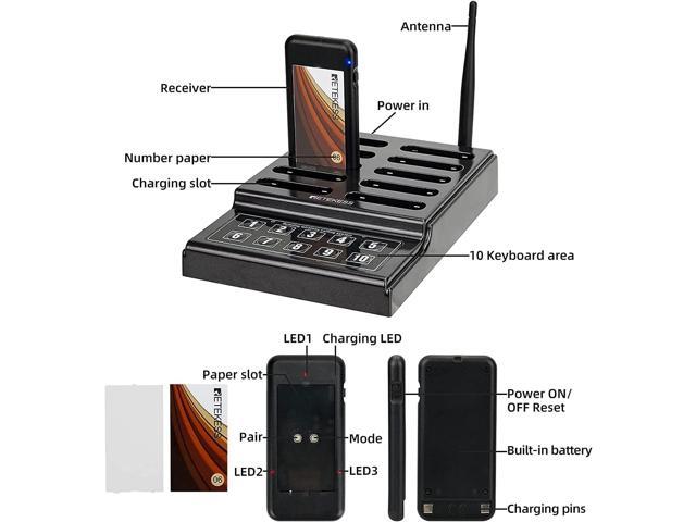 Retekess wireless calling queuing system is compact size; convenient for use; save space effectively; this pager system puts visitors at easy and no need to look for parents in the congregation; when their children need help3 prompt modes; vibration and buzzer and LED; vibration and LED; buzzer and LED; battery status and low power indication; vibration can be well used in church nursery not to disturb the church service