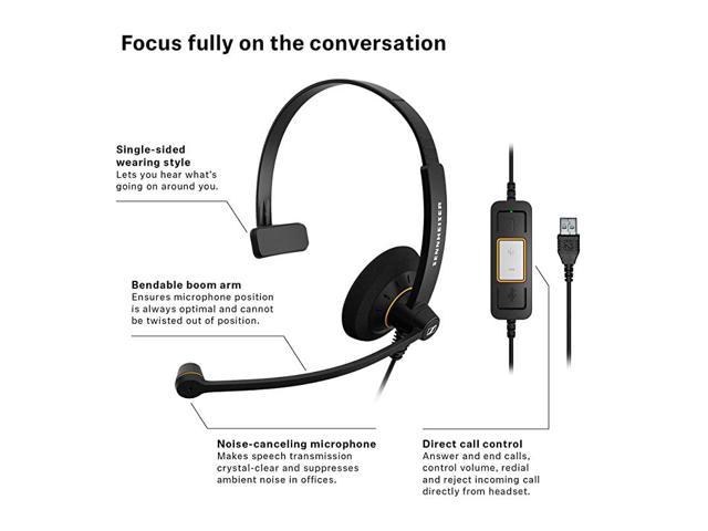 SC 30 USB ML 504546 SingleSided Business Headset | For Skype for Business | with HD Sound NoiseCancelling Microphone amp USB Connector Black