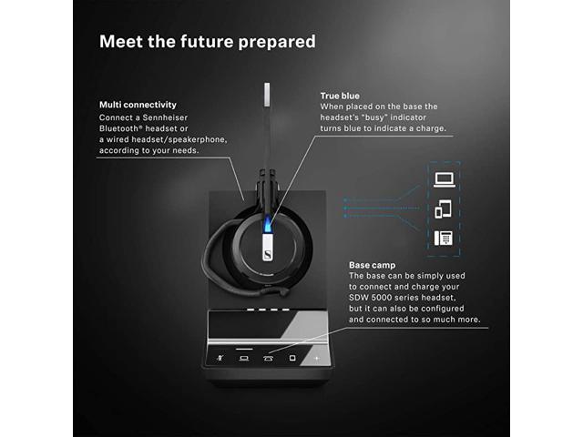 Style: Desk/PC/Softphone ConnectionWhen business demands only the best in performance, look no further than the SDW series. With supreme wearing comfort, a wide choice of wearing styles (Headband, Ear Hook, or Neckband), and an ultra noise-canceling microphone, the iconic design of the SDW series puts it in a class of its own. As voice quality plays a vital part of our day-to-day conversations, choosing the right office headset solution to ensure the communication experience is as close to natural face-to-face conversations as possible is paramount. With a reduction in disruptive background noise, the voice quality for both speaker and listener is dramatically improved, increasing understanding and overall efficiency. Designed with quality components for durability and comfort, our intuitive headset-based call management, generous talk time, easy charging and conferencing abilities make wireless DECT business headsets simply the best tools for the job. Combine these high-performance features with the flexibility of dual connectivity to both desk phone and softphone/PC all to give you have the ultimate in professional business headsets. With purchase of an USB dongle, you can upgrade your device from dual-connectivity to multi-connectivity.
