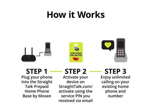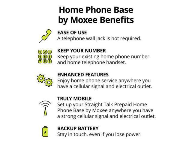 Keep your home phone number and telephone without the contract with Straight Talk Prepaid Home Phone Base by Moxee. Enjoy unlimited local, long-distance and 411 calls on one of Americas most reliable networks with no activation, cancellation reactivation, overage fees or daily access fees. Whether you want to have long conversations with family without worrying about charging or the convenience of hands-free conference calls for your small business, the Straight Talk Prepaid Home Phone Base by Moxee is the solution for you Requires activation with a Straight Talk 30-Day Home Phone Plan. (NOT INCLUDED) Explore both of our