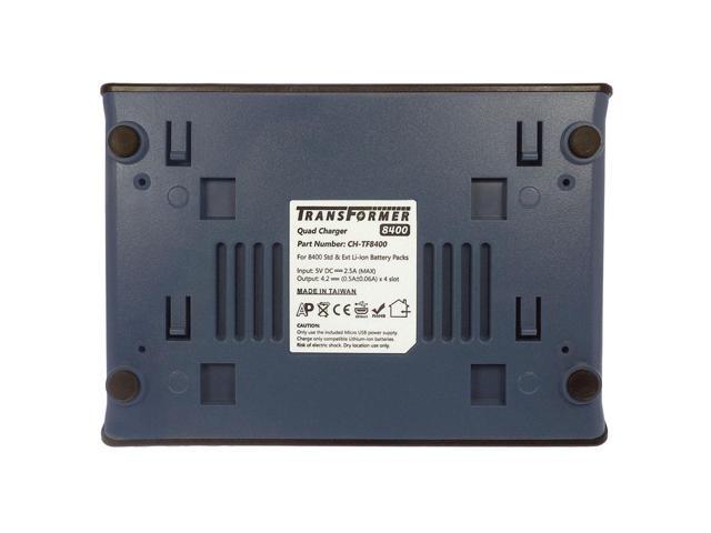 Our Transformer 8400 also features durable connectors to ensure a more consistent fit and long-term connection with the battery packs for each charge. Our Quad Charger also includes simple LED lights to indicate each battery?s charging status.
