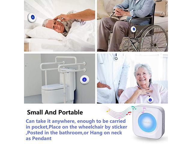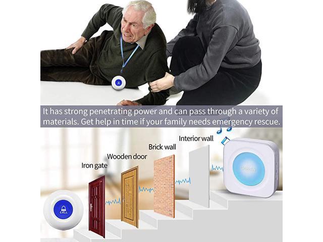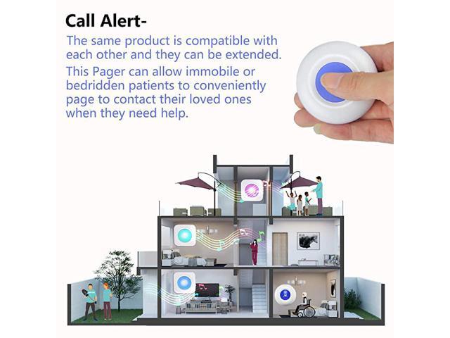 **********[Take care of your family]: 3 Pagers and 3 Call Buttons, It is convenient for upstairs and downstairs or like the kitchen/washing room Where is enclosed and noisy can be installed separately.The Idea is for both caregiver and patient/elderly/resident/handicapped/sick freedom while still calling for help at home.*****[High-frequency technology]: Using adaptive high-frequency technology, More anti-interference than the ordinary doorbell over 600ft/180m in the open area, Strong penetration and signal stability, Can penetrate a few walls.*****[Convenient for carrying]: The transmitter can be worn conveniently around the neck or carried in a pocket. Simply pressing a button on the transmitter will cause the receiver to alert a loud sound, not need to Yell to Get Someones*****[36 Melodies and LED flash]:Pager/chime unit has 36 ring tones for your choice. 4 level adjustable volume from 0db to 110db,silent mode with LED flash is available.Easy use ( Plug and Play) Plug the Receiver