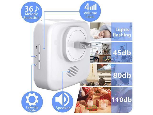 LED flash]: Pager/chime unit has 36 ring tones for your choice. 4 level adjustable volume from 0db to 110db, silent mode with LED flash is available. Easy use ( Plug and Play) Plug the Receiver