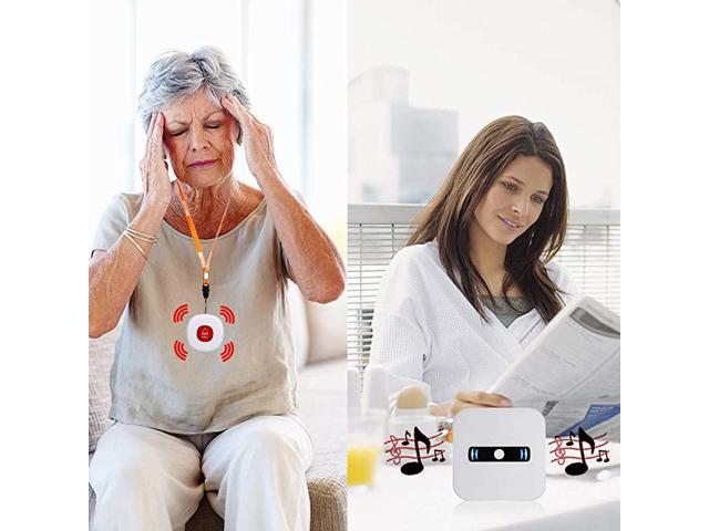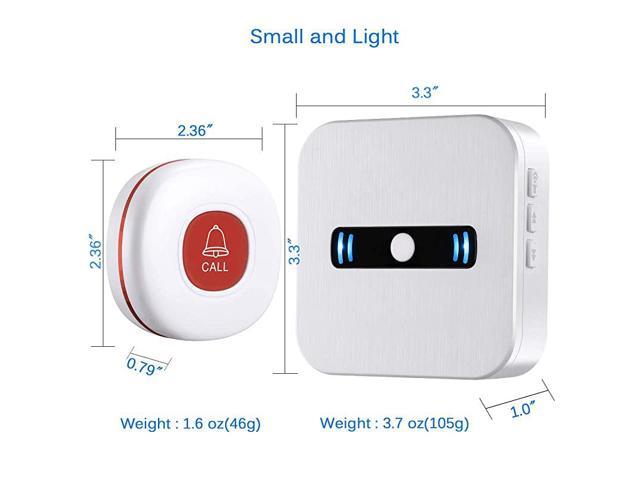 ********************The Caregiver pager, the Idea is for Both Caregiver and Patient/Elderly/Resident/disabled person while Still calling for Help at home. Not need to Yell to Get Someones Attention.**********Portable Pagers Batteries Included.It is convenient for Caregiver Portable.It can be took anywhere such as in Pocket/in Bag/Outside/Garden/Upstair/Downstair.**********Operating Range is 500+ Feet in open Area.**********SOS Call Button is Easy Carry. It can be Put in Pocket or Hang on neck as Pendant. Neck Strap included. Push Call Button is Waterproof. Acceptable for Fixed in Bedside/Washing Room.**********The Button transmitter requires a 23A 12V Alkaline battery which are already included and not rechargeable.