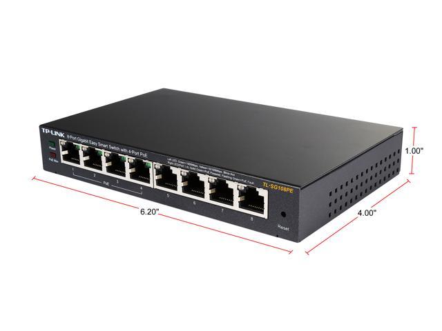 Flexible Full Gigabit 8-Port PoE Configuration 4x PoE+ (802.3at/af) 10/100/1000 Mbps RJ45 ports providing up to 30W per port and total PoE power budget of 64W, together w/ 4x Gigabit Non-PoE Port for high-speed connectionsEasy Smart Management Simple setup and monitor your network with easy-to-use web-based management interface and smart configuration utility.Network Segmentation Abundant VLAN features improve network security via traffic segmentationPoE Auto Recovery The switch automatically detects and reboots the dropped or unresponsive PoE-powered devices without the need for manual monitoring or resettingPlug and Play Easy setup with no software installation or configuration neededAdvanced Software Features Prioritize your traffic and guarantee high quality of video or voice data transmission with Port-based 802.1p/DSCP QoS and IGMP Snooping