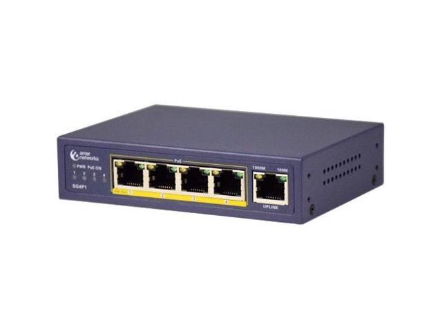 Designed for use with Power over Ethernet (PoE) devices, the SG4P1 switch provides up to 15.4W of power to 802.3af PoE compatible devices connected to the switch’s PoE ports. The Switch allows these devices to draw power from the switch and remove the need for a power adapter. Some devices that may have support for 802.3af are Wireless Access Points, IP Phones and IP Cameras. The Ethernet ports automatically negotiate between 10BASE-T and 100BASE-TX network speeds, as well as between full and half duplex modes, so any port can connect to a Fast Ethernet or Ethernet network. The ports also support Auto MDIX, allowing the automatic detection of a straight through or cross-over cable, this feature reduces support problems commonly caused by incorrect cable usage. Package Contents: 5 Port 10/100/1000 Desktop Switch with 4 PoE ports Wall Mounting Kit Product Type: Ethernet Switch Power Source: AC Adapter Layer Supported: 2 Product Type: Ethernet Switch Manufacturer Part Number: SG4P1 Packaged Quantity: 1 Power Source: AC Adapter Limited Warranty: 3 Year Layer Supported: 2 Weight (Approximate): 10.88 oz Form Factor: Under Table Form Factor: Wall Mountable Form Factor: Desktop Network Technology: 10/100/1000Base-T Form Factor: Under Table Form Factor: Wall Mountable Form Factor: Desktop Manufacturer: Amer Networks, Inc Product Model: SG4P1 Product Name: 5 Port 10/100/1000 Desktop Switch with 4 PoE ports Network Technology: 10/100/1000Base-T Brand Name: Amer Brand Name: Amer Height: 1.1 Width: 4.6 Depth: 3.3 Manageable: No Ethernet Technology: Gigabit Ethernet Stack Port: No Media Type Supported: Twisted Pair Total Number of Network Ports: 5 Port/Expansion Slot Details: Gigabit Ethernet Manageable: No Environmentally Friendly: Yes Environmental Certification: RoHS Ethernet Technology: Gigabit Ethernet Modular: No Uplink Port: Yes Stack Port: No Media Type Supported: Twisted Pair Total Number of Network Ports: 5 Port/Expansion Slot Details: 1 x Gigabit Ethernet Uplink Port/Expansion Slot Details: 4 x Gigabit Ethernet Network