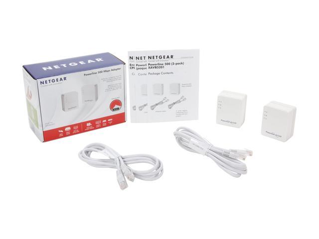 | Package Contents | Two (2) Powerline 500 Adapters (XAV5201) Two (2) 2 m (6.5 ft) Ethernet cables Quick install documentation |