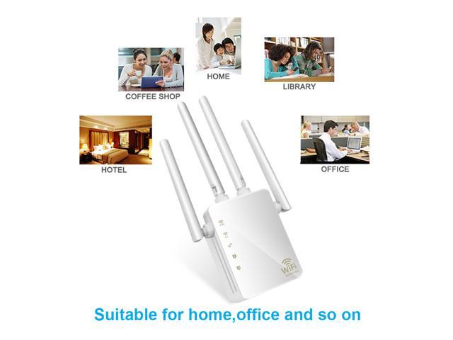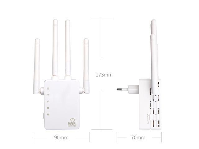 Description: This dual band wifi Repeater is Mainly used for providing free WIFI service in big area such as factory, community, street, home or etc. For example, the normal enhancer can expend distance up to 150~300 meters away. If there are more repeaters or more bigger power repeater, the range will extended further; the Repeater simultaneously supports 2.4G and 5G wireless network connection, and it can supports 2.4G or 5G transmission speeds of up to 300M. It has 2dBi Antennas providing even better wireless performance, transmission rates, stability technology automatically avoids channel conflicts using its channel selection feature. Kills Wi-Fi dead zone with strong Wi-Fi expansion at combined speed of up to 1.2G bps