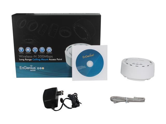| Package Contents | EAP300 N300 Indoor Access Point 12V / 1A Power Adapter Ceiling Mount and Wall Screw Kit Mounting Bracket RJ-45 Ethernet Cable Quick Installation Guide CD with User Manual |