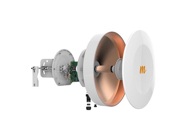 Frequency: 5150 – 5875 MHz (supports the new band 5600-5650 MHz). Distance from 0 to 10 km approximately depends on the restrictions of the local regulations. Maximum performance up to 1.5 Gbps of added speed in DL / UL. 25 d Bi antenna, 8 ° dual-polarization V / H.