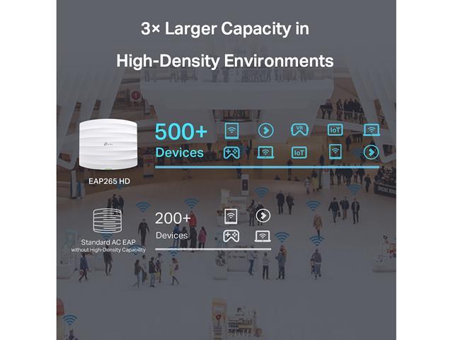 Superior Speeds with MU-MIMO – Designed with the latest 802.11ac Wave 2 MU-MIMO technology, the EAP265 HD easily delivers dual-band Wi-Fi speeds of up to 1750 Mbps to multiple devices at the same time.High-Density Connectivity – MU-MIMO, Load Balance & professional antennas improve capacity in dense environments to connect more devices simultaneously.Integrated into Omada SDN – Omada’s Software Defined Networking (SDN) platform integrates network devices including access points, switches & gateways with multiple control options offered – Omada Hardware controller or Omada Software Controller. Standalone mode also applies.Cloud Access – Remote Cloud access and Omada app brings centralized cloud management of the whole network from different sites-all controlled from a single interface anywhere, anytime.SDN Compatibility – For SDN usage, make sure your devices/controllers are either equipped with or can be upgraded to SDN version. SDN controllers work only with SDN Access Points