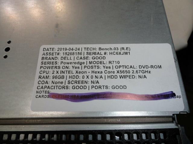 Brand : DellModel : Poweredge R710Gtin13 : Does Not ApplyForm Factor : Rack MountRaid Levels : No Hard Drives, No Caddie/S!Processor Manufacturer : IntelCountry/Region Of Manufacture : ChinaProcessor Type : Xeon X5650Type : ServerProcessor Speed : 2.6 GhzProduct Line : PoweredgeNumber Of Processors : 2Ram Size : 96 GbMemory Type : Ddr3 SdramNetwork Connectivity : Wired-Ethernet (Rj-45)Memory (Ram) Capacity : 96Gb