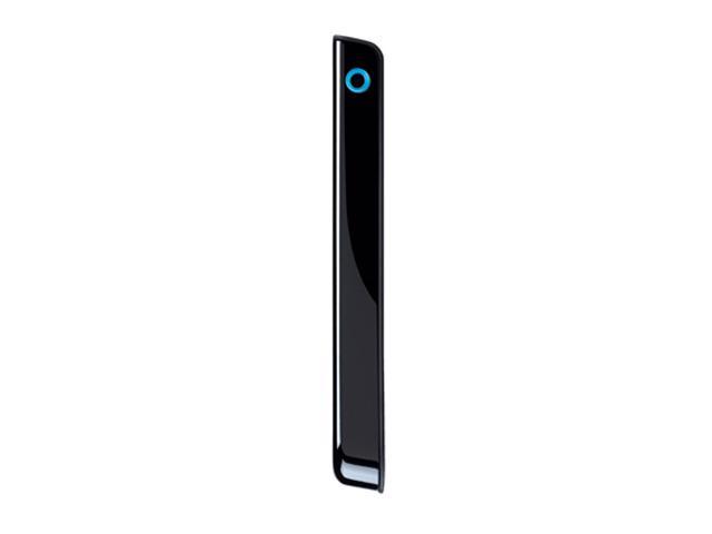 Pros: Quiet, attractive and small form factor storage that gets its power from the USB port, so no need for clunky AC adapters wrapped with tangled electrical cords. Nice blue LED ring signals activity, glossy black finish is modern and attractive.