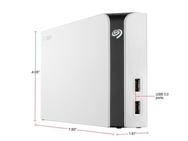 Pros: This is a Xbox One Game Drive Hub. meaning its not only a 8TB External Hardrive that works with Xbox One.. It Also serves as a USB hub to connect controllers, and additional external hardrives to the Xbox One. It is USB 3.0 and comes with a universal power adapter. The power adapter is 12 volt, 3 amps and appears to be well made. It is large enough to block an additional power connector on a standard power strip. The cord for the power adapter is 59″ long.. just under 5 feet. The included USB 3.0 cord is 47″ long. just one inch short of 4 feet. When you plug in the Gamedrive the Seagate Logo on the front will light up white, its pleasing and not overly bright, it also does not flash when in use so its not distracting.