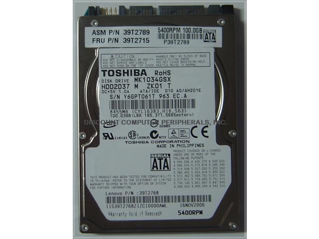 TOSHIBA HDD2D37 (MK1034GSX) 100GB 5400 RPM 8MB Cache SATA 1.5Gb/s 2.5" Notebook Hard Drive Bare Drive