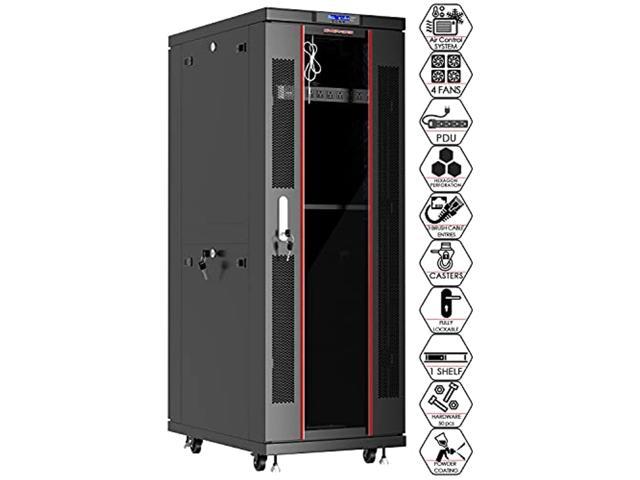 HIGHLIGHTS: 37 U Server Rack Fully Locking Network cabinet on Wheels is a reliable protection to IT / networking Equipment while providing accessibility during installation or maintenance. The 32″ ove HIGHLIGHTS: 37 U Server Rack Fully Locking Network cabinet on Wheels is a reliable protection to IT / networking Equipment while providing accessibility during installation or maintenance. The 32″ ov WHAT’S THE 37 U SERVER CABINET: Robust security cabinet – Aesthetic and Elegant Look computer cabinet rack with Glass door – Accessories Over $150 Value Included – 32 Inch Overall Depth – Powder Coat EASY TO SET UP AND USE. The Network Server Rack Is Easy to Assemble and maintain Due to Welded Frame Design and High Quality Hardware. Video Guide and Pdf-form Assembly Instructions Provided. No Spec SATISFACTION GUARANTEE: We Aim to Provide Each Customer with the Highest Standard of CS. Quick Customer Service Support / 2 Years Guarantee on All Rack Cabinet Enclosures and Accessories.