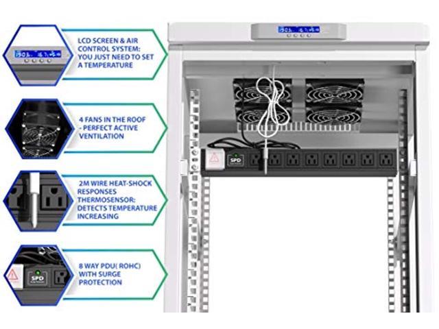 18U SERVER CABINET – Robust Enclosed Server Rack – Aesthetic and Elegant Look Computer Cabinet Rack – Glass Or Vented Enclosure – 35 Inch Enclosure Overall Depth – Accessories Over $190 Value Included TECHNICAL PARAMETERS – 18U 35-inch deep server rack / Dimensions: (24”Wx24”Dx42”H) / Rolled steel profile / Frame / server rack rails – 1.5mm; other components (incl rack mount shelf) – 1.0-1.2 USABILITY AND SAFETY FIRST – 18U Free Standing Network Cabinet – enclosed cabinet designed for 19 inch standard equipment. Smart technology cabinet with 4 X Cooling Fans / LCD Screen / Thermosensor / Flexible Return Policy and 2-year Guarantee on all Server Rack Cabinet Network Enclosure EASY TO SET UP AND USE – The Network Server Rack Is Easy To Assemble And Use Due To Welded Frame Design And Quality U-mark Mounting Rail Hardware. Video Guide and Pdf-form Assembly Instructions Provi