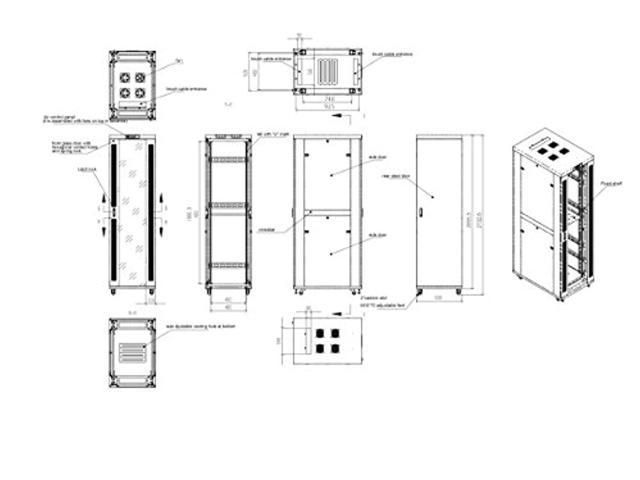 Features: 4 fan cooling panel, capacity 440m3/h Air Temperature Control System (THERMOSTAT) Perforated Front and rear doors 8-way PDU Fixed Vented shelf, Heavy duty feet and casters with “brake” option Lockable latch handles Mounting hardware (Set of bolts/nuts -50 pcs) Front door – glass with perforated metal frame (optionally, steel mesh front door) Lockable and removable doors, side and rear panels 2 dust-tight brush strip panels for cable entry U-marking mounting rails