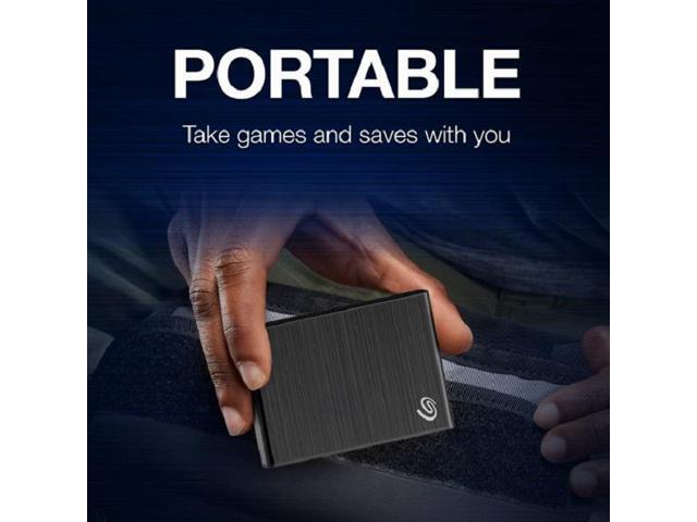 Slash game boot and loading times while keeping an epic library of titles at the ready with Seagate Game Drive SSD. Featuring blazing-fast solid-state speeds and up to 500GB of space, gamers can store 12+ personal favorites in a compact, lightweight, shock-resistant drive thats fit for home or heading out the door. PS5 and PS4 compatible, with plug-and-play USB-C and USB 3.0 connectivity to make setup easy.With up to 500GB of space on this external solid-state drive, store 12+ titles and boot games faster with the full-throttle speeds of a portable gaming external SSDThanks to the flash-speed performance of SSD, players can barrel past game boot and load times and jump into the action fasterEasy plug and play USB 3.0 connectivity that works with PS5 & PS4This external solid-state drive features a lightweight, shock-resistant design with a sleek black finish