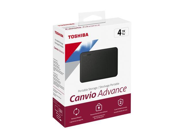 | Package Contents | Toshiba Canvio Advance Portable Hard Drive USB 3.0 Cable (works with USB 2.0) Quick Start Guide Downloadable Software* * Software is available via a free download that is subject to Toshiba Electronic Devices & Storage Corporation’s and/or Toshiba America Electronic Components, Inc.’s standard End User License Agreement. Software is compatible with Windows PC only. |