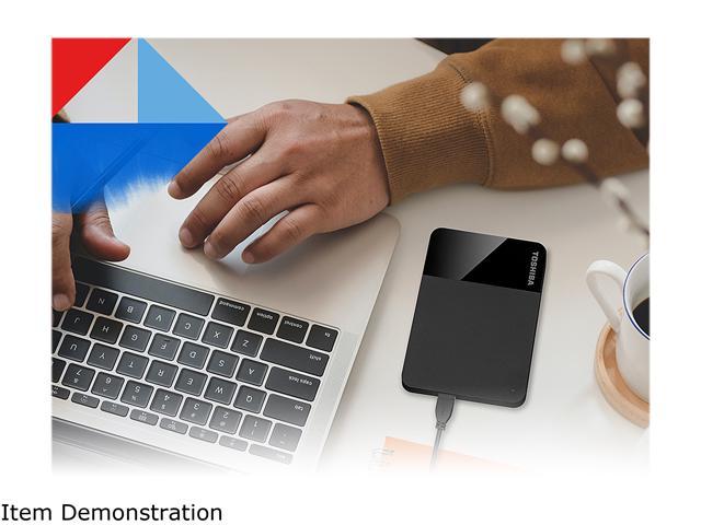The Canvio Ready features a sleek, compact design with a unique two-tone matte & gloss black finish that’s stylish and easy to carry. With USB 3.0 technology, you’ll be able to transfer files on the go while powering the drive through your laptop’s compatible USB connection.