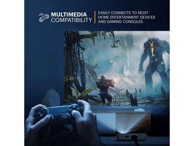 FROM SMARTPHONE TO THE BIG SCREEN | Pocket Projector Produces Bright, Vivid Video & Imaging Up to 150 for Amazing Home Entertainment; Watch Movies Plugging in an External Device, View Pictures or Give Presentations Anywhere a Wall is Available MULTIPLE METHODS FOR VIEWING | Versatile Device Comes w/ HDMI & Micro USB Cables for Hookup to Camera, Storage Drive, PC, Laptop & Other Compatible Devices | Go Wireless w/ Mobile-to-Projector Mirroring Via Airplay & Miracast STUNNING 16:9 PROJECTION | Device Boasts 60 Ansi lumen brightness LED Lamp, 854 x 480 Resolution, Supports 4K Resolution & 1000:1 Contrast Ratio for Crystal Clear Widescreen Imaging; Watch HD Video, Play 4K Games & Share Family Photographs w/ Brilliant Color & Clarity DESIGNED FOR EASY PORTABILITY | Includes Built-In Speaker & Sleek Illuminated Onboard Controls So You Can Watch & Listen On Demand| Powers Via Rechargeable Battery Up to 2.5 Hrs.
