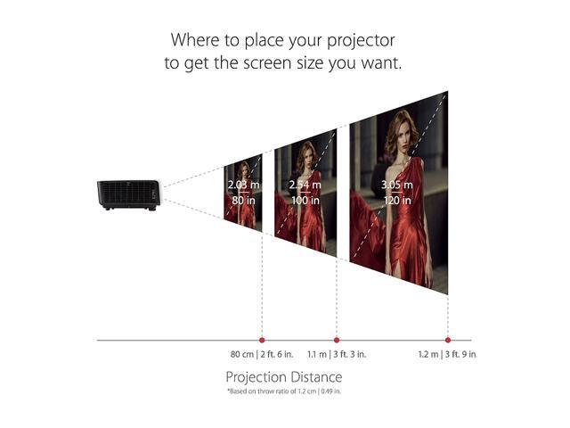 BIG SCREEN PROJECTION: Short throw lens projects up to 120-inches from 4-feet 5-inches in 3200 lumens