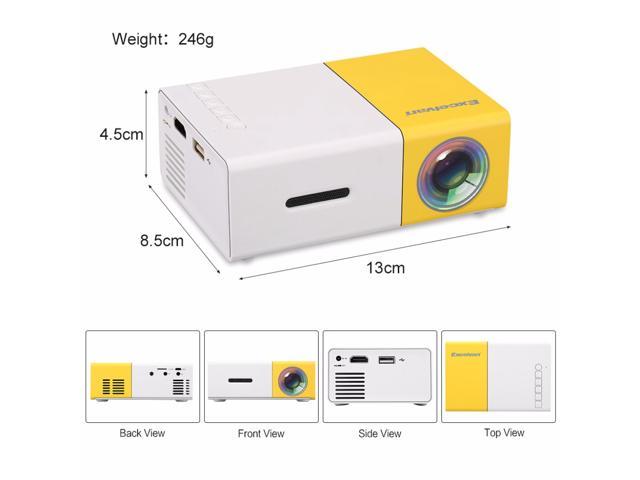 Brand: Excelvan 100% brand new and high quality. LED projector with 500 lumens, and a resolution of 320*240pixels. Projection size up to 60 inches, projection distance from 1m to 3.8 m.