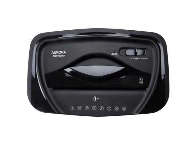 • High-Security Micro-Cut with 10 sheet capacity; destroys credit cards• Shreds paper and credit cards into tiny pieces (5/32 by 15/32 inches_ 4 X 12mm), security level P-4• 5 minute continuous run time; Auto start and manual reverse to clear paper jams• 5.2-gallon wastebasket, Easy lifting handle; thermal protection with auto shut-off and overheat LED indicator• Backed by an Aurora 1-year limited warranty