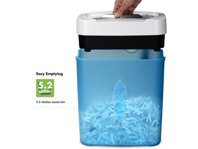 In addition to paper, the AU1232XA shreds credit cards, keeping vital information from falling into the wrong hands. The throat of the shredder is 8.7 inches wide and allows continuous shredding for 5 minutes. The item includes an integrated handle for easy emptying of the 5.2 -gallon wastebasket and anti-jam auto-reverse feature to clear paper jams.