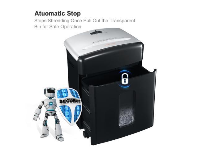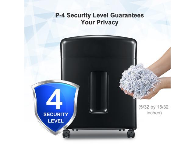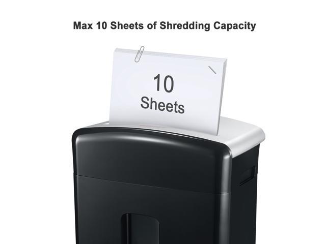 Micro-cut paper shredder with 10 sheets (Letter Size, 20lb) shredding capacity and 5/32 by 15/32 inches (4x12mm), security level 4; shredding size is perfect to keep your confidential information safe.Destroys paper, staples, credit card(one at a time)Auto start and auto reverse function protect you from the frustration of paper jams; overheating and overloading protection technology keeps sustainable using and prolong shredder’s lifetime.5 minute continuous run time with 45 minutes cooldown time; Auto start and manual reverse to clear paper jams3.5 Gallons pull-out wastebasket capacity for less frequent and easy emptying, Easy to see when it is full with the semi-window